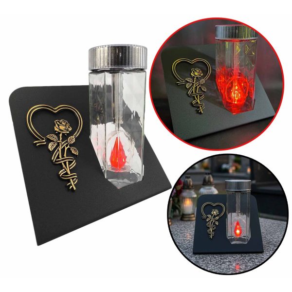 Ten nowoczesny elektryczny znicz z efektem płomienia solarny, wykonany z metalu, to elegancki i trwały sposób na uczczenie pamięci bliskich. Tuba z precyzyjnie wyciętymi laserowo zdobieniami została wykonana z wysokojakościowej stali, co nadaje zniczowi wyjątkowy charakter. Wewnątrz znajduje się karbowana tuba z bezbarwnego tworzywa, która dodatkowo rozprasza światło wkładu LED zasilanego przez wydajny panel solarny. Symetryczne, dekoracyjne wzory pozwalają na subtelne rozpraszanie światła, tworząc nastrojowy i piękny efekt.