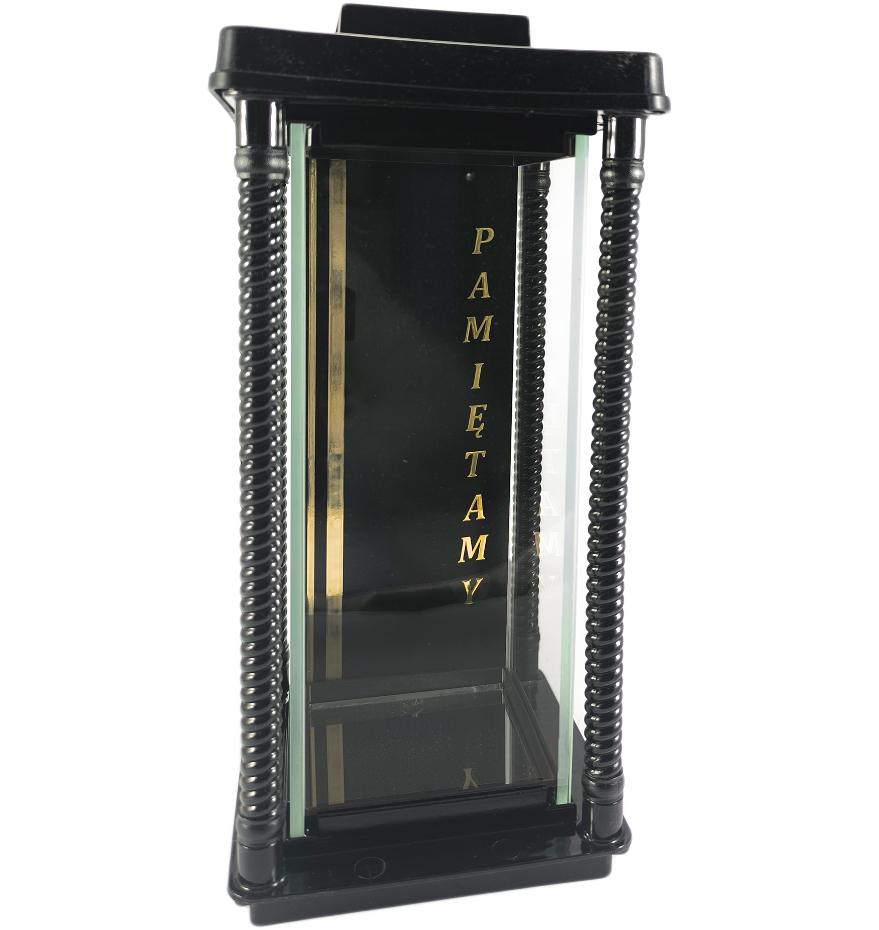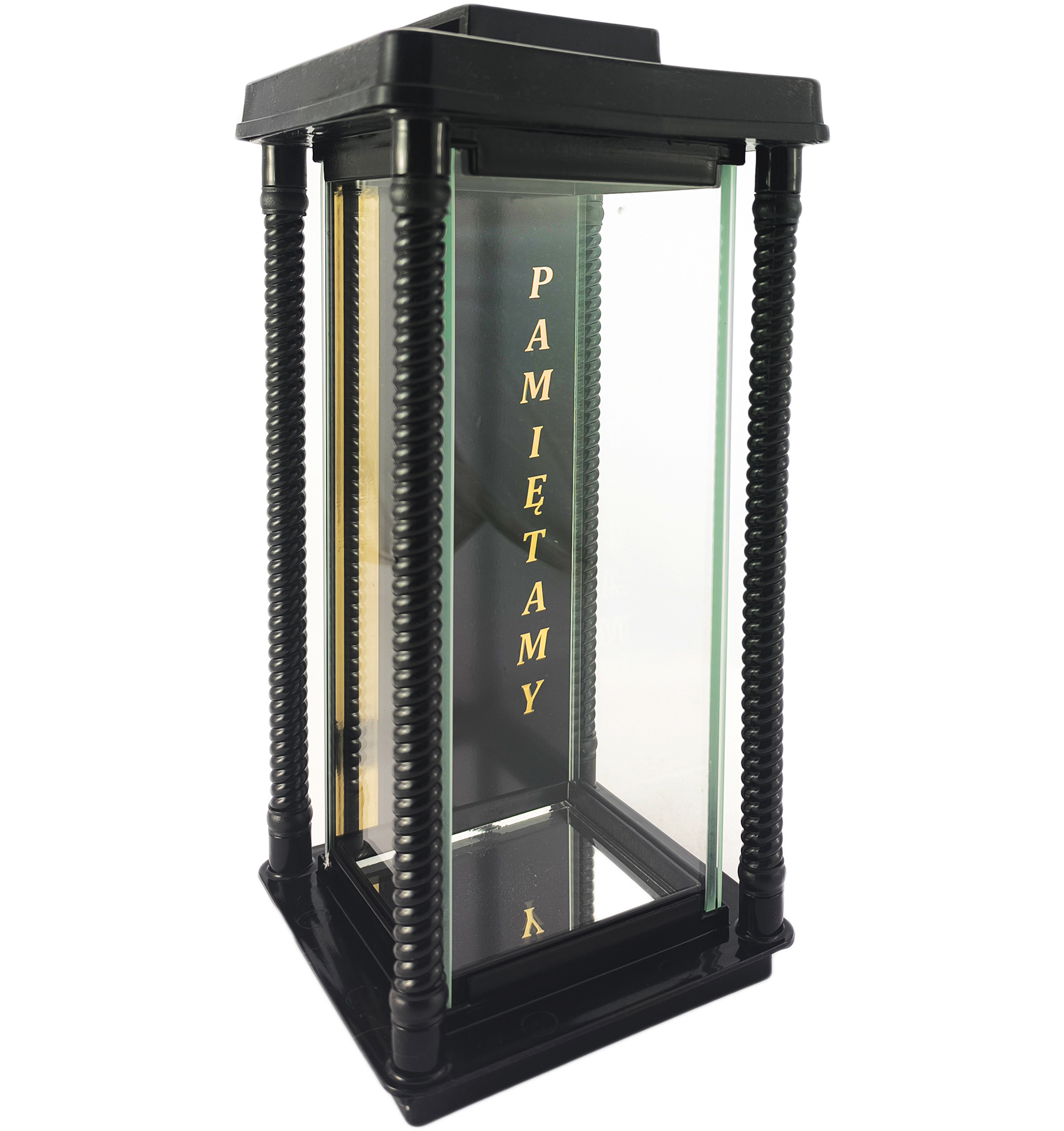 Kapliczka wykonana z grubego i bezbarwnego szkła. Lampion wysoki Pamiętamy jest ciężki, solidny, a szeroka podstawa zapewnia stabilność. Tylna ściana została ozdobiona od wewnątrz złotym napisem PAMIĘTAMY. Znicz charakteryzuje się smukłą, prostokątną konstrukcją wspartą na czterech ozdobnych kolumnach, co nadaje mu klasycznego, a zarazem solidnego wyglądu