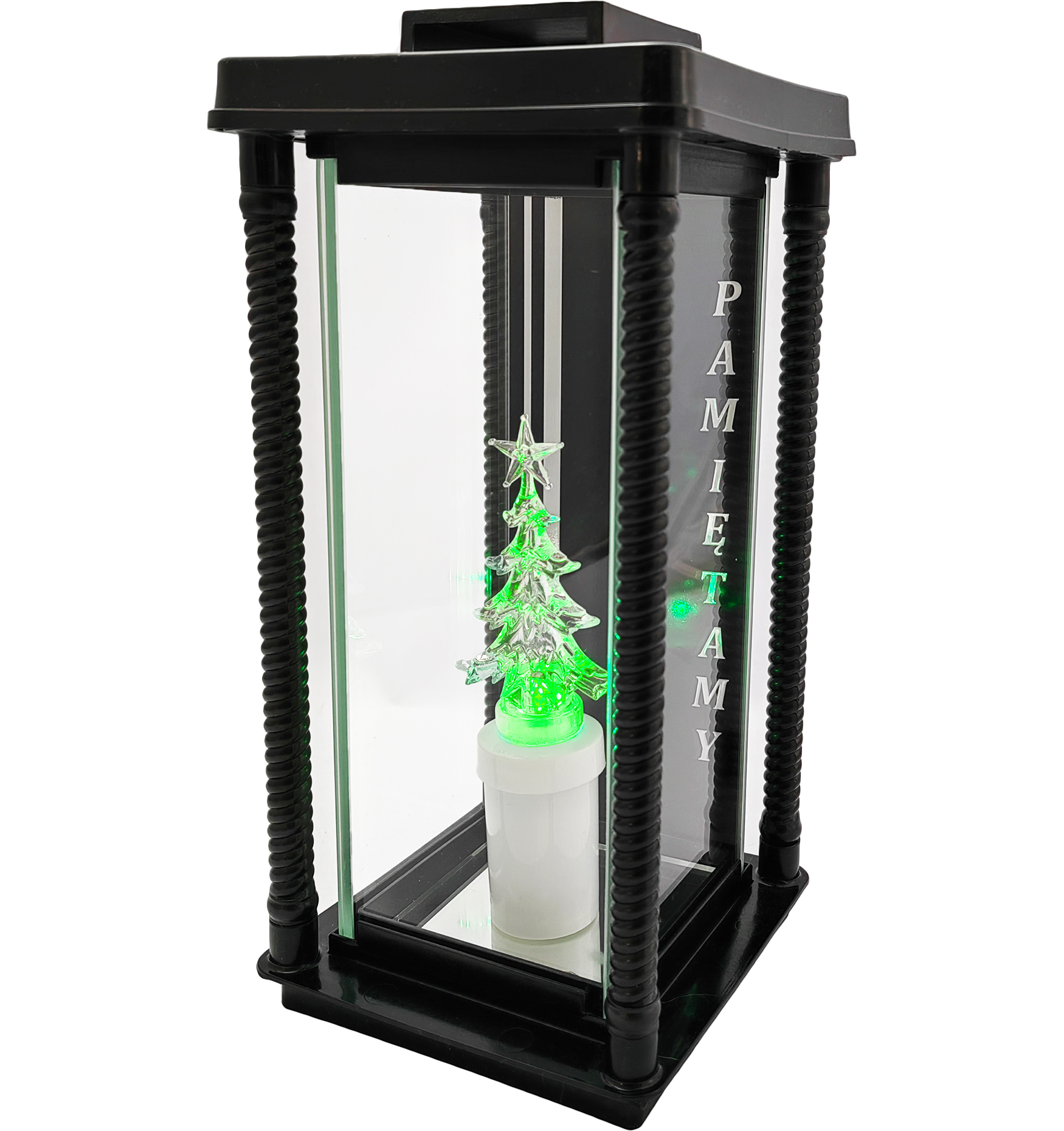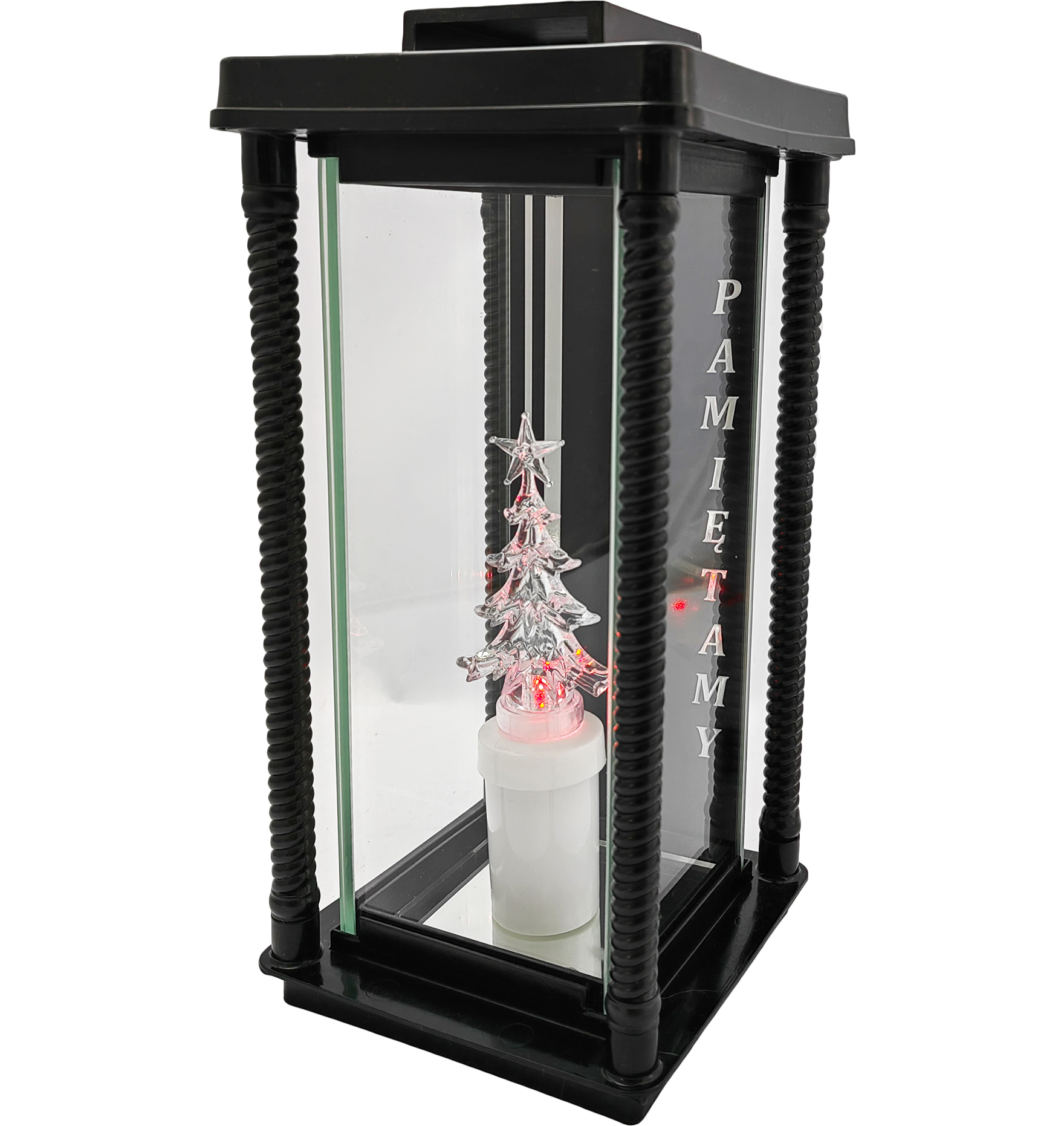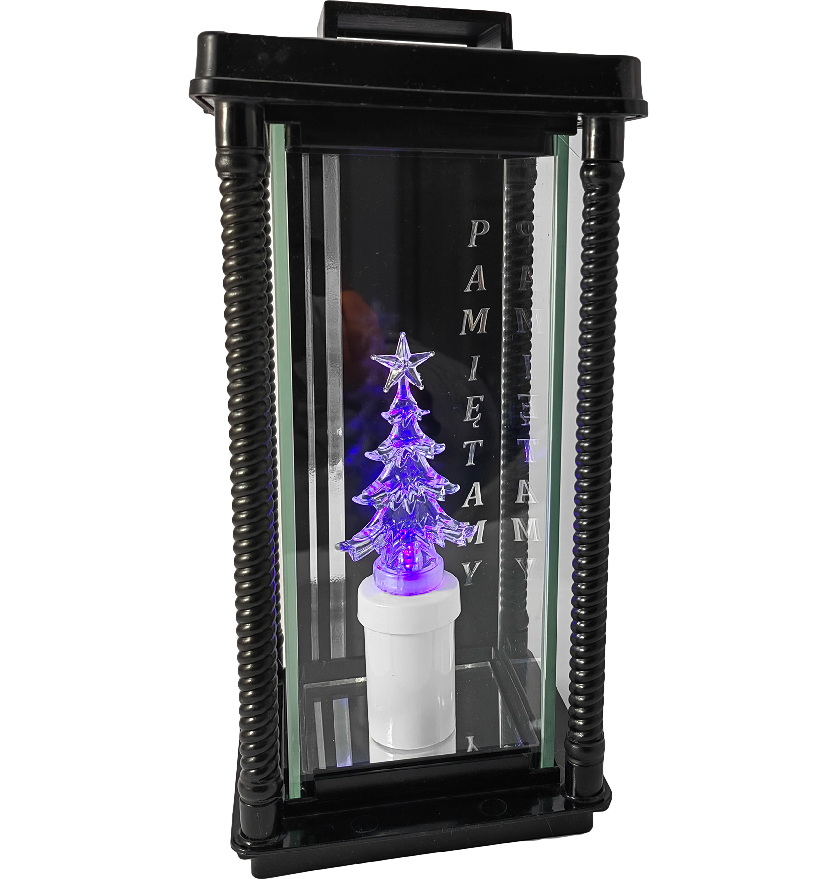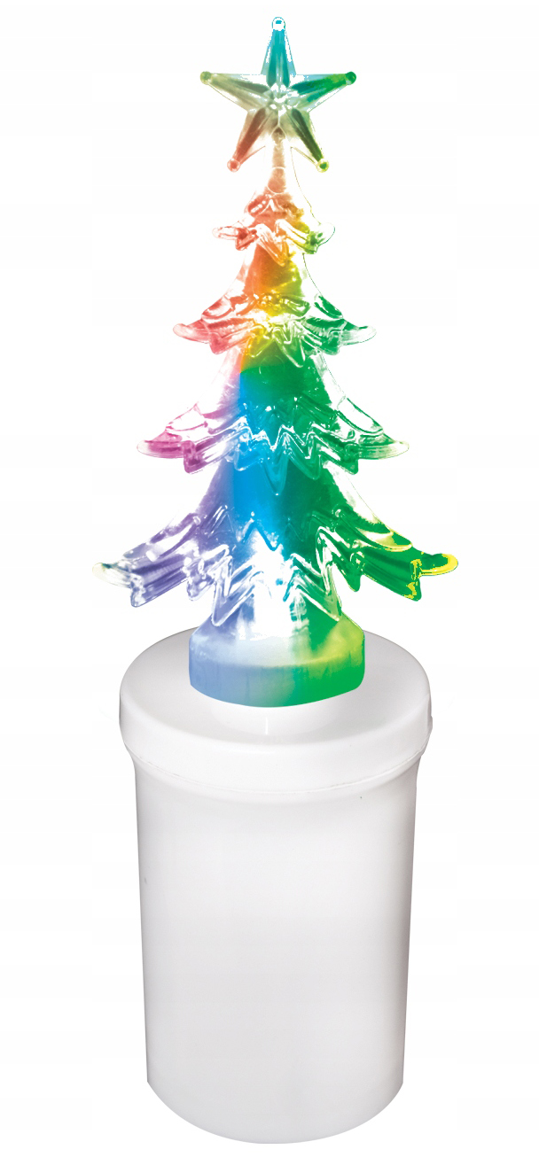 Piękny świąteczny wkład LED do zniczy w kształcie choinki. Po włączeniu choinka jest podświetlana na różne kolory. Kolor podświetlenia zmienia się płynnie co kilka sekund.
