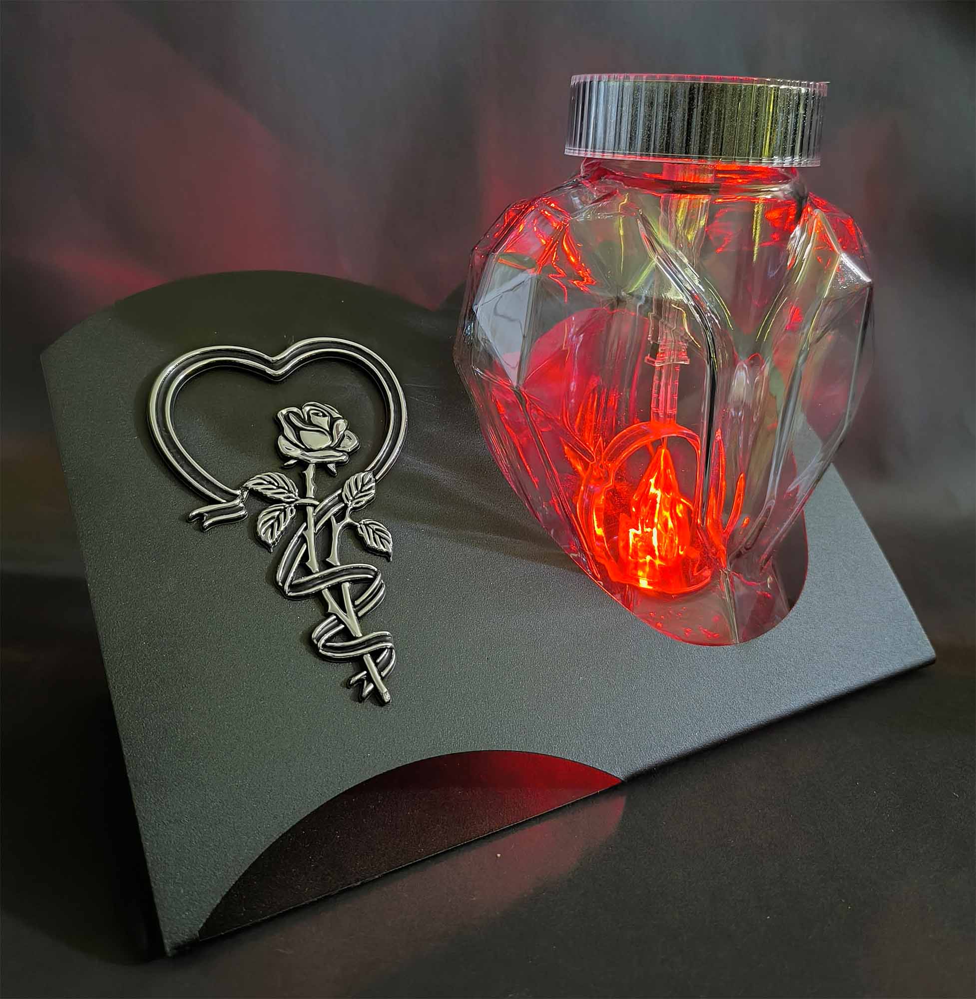 Prezentujemy wyjątkowy znicz solarny LED w kształcie diamentowego serca, który łączy w sobie elegancję i nowoczesną technologię. Subtelne wzornictwo oraz czerwone intensywne światło sprawia, że znicz solarny idealnie nadaje się na miejsce spoczynku bliskich osób.