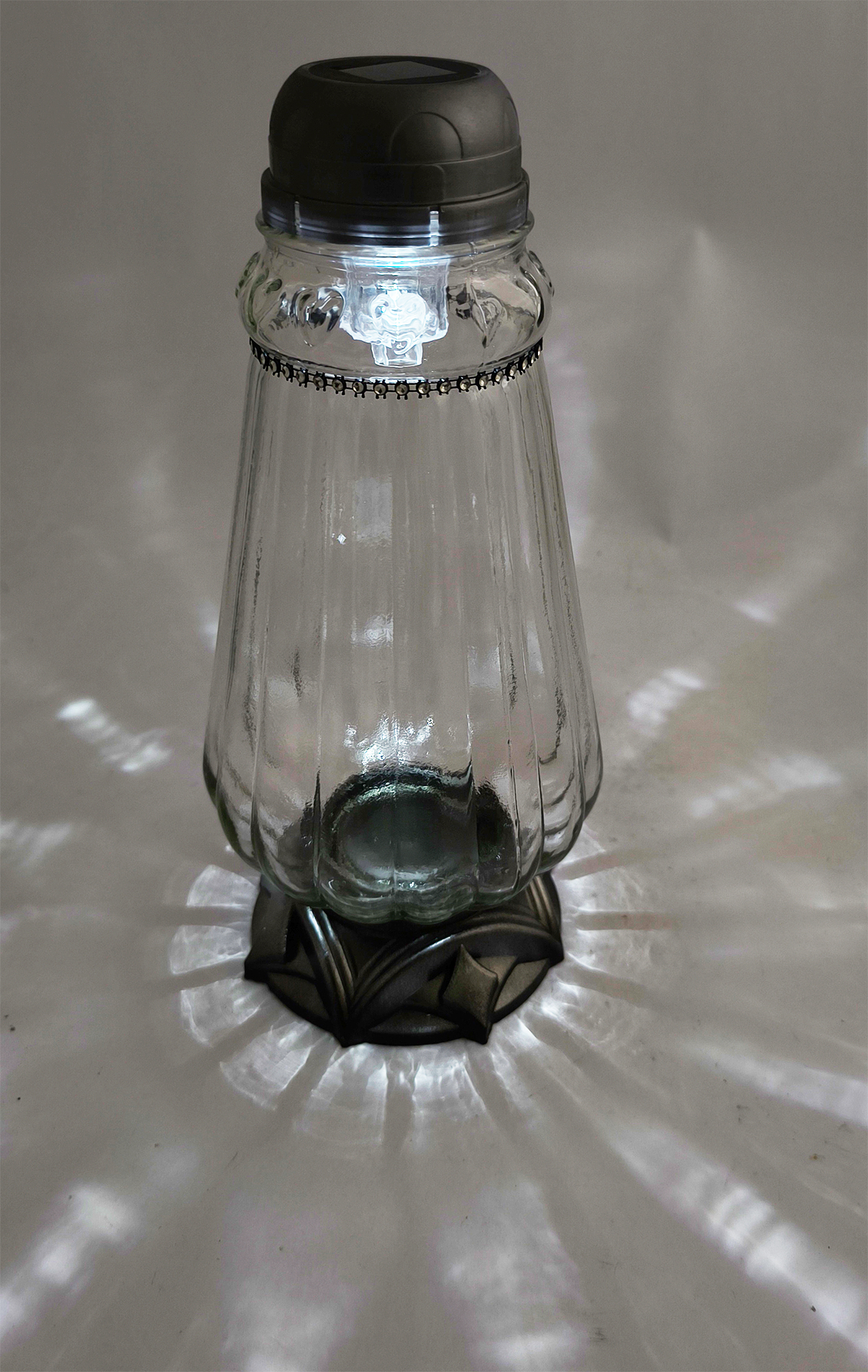 Duży nowoczesny znicz solarny z opaską z cyrkonii