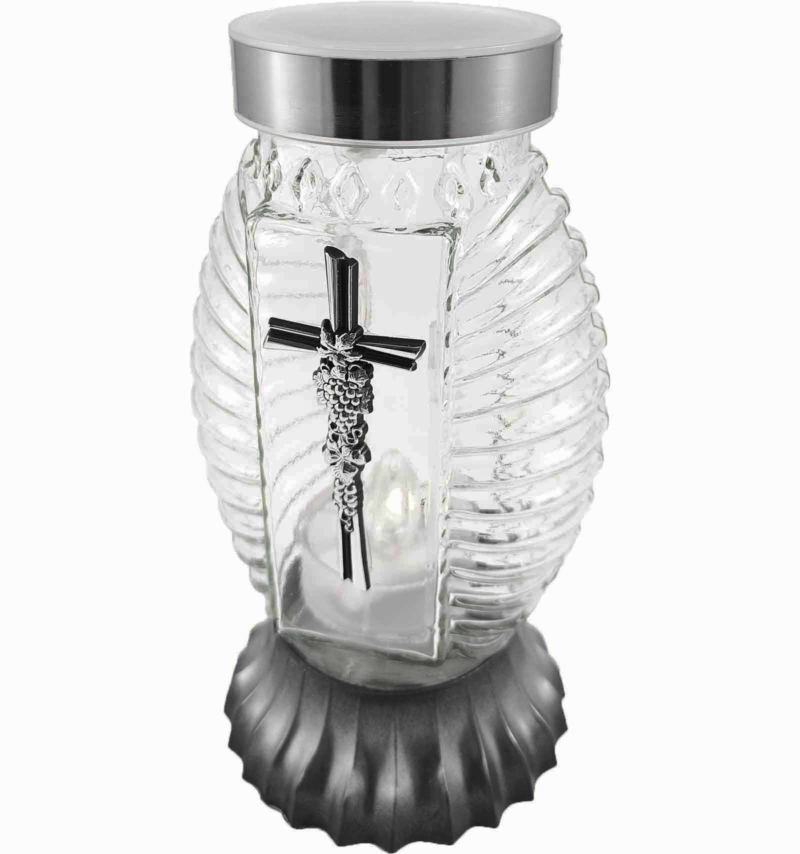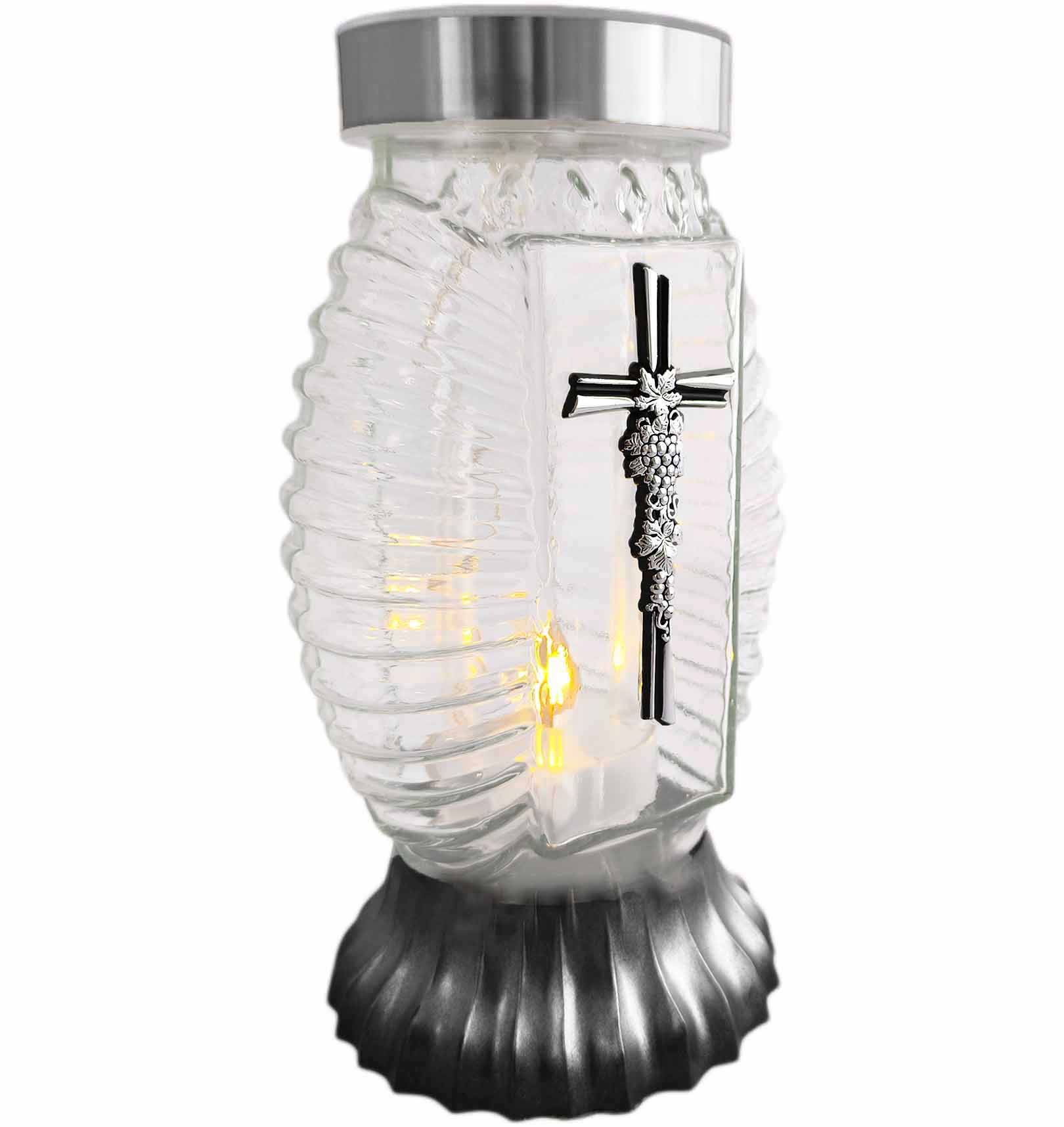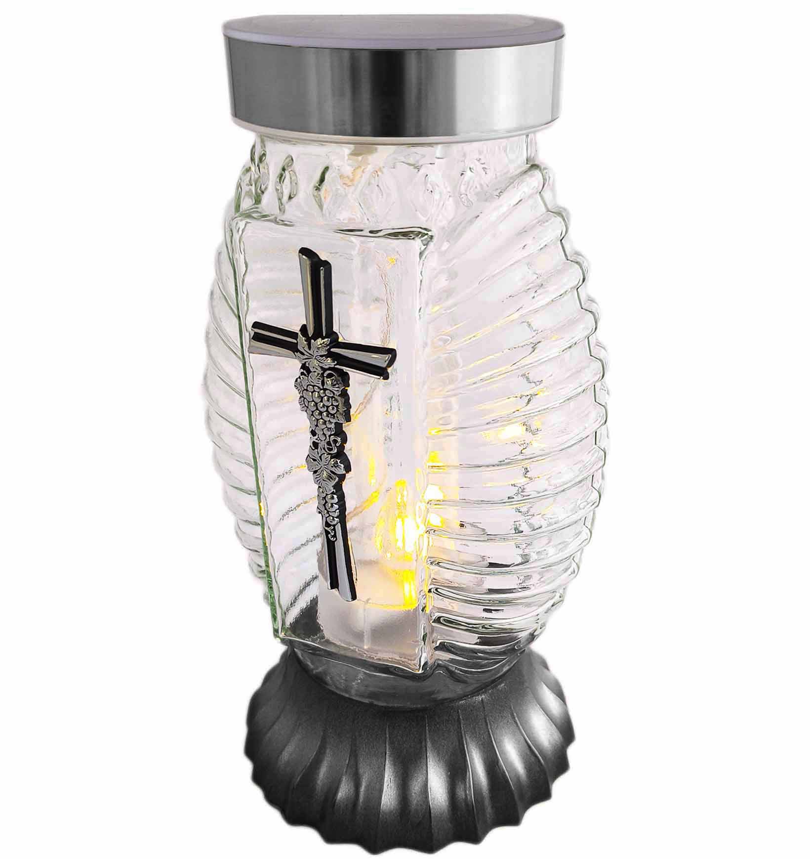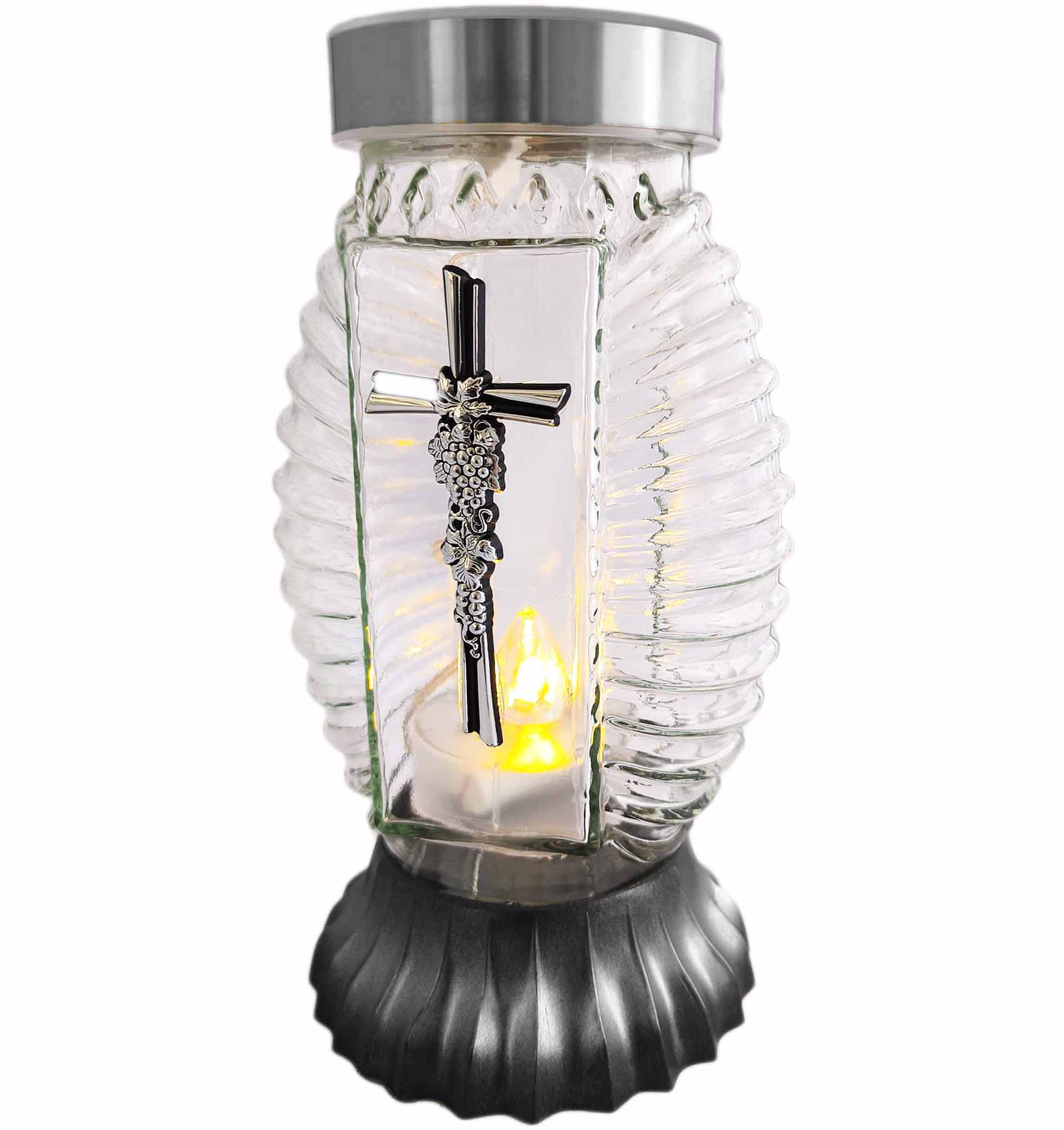 Znicz Solarny Fotowoltaiczny z Krzyżem – Szklany Lampion LED