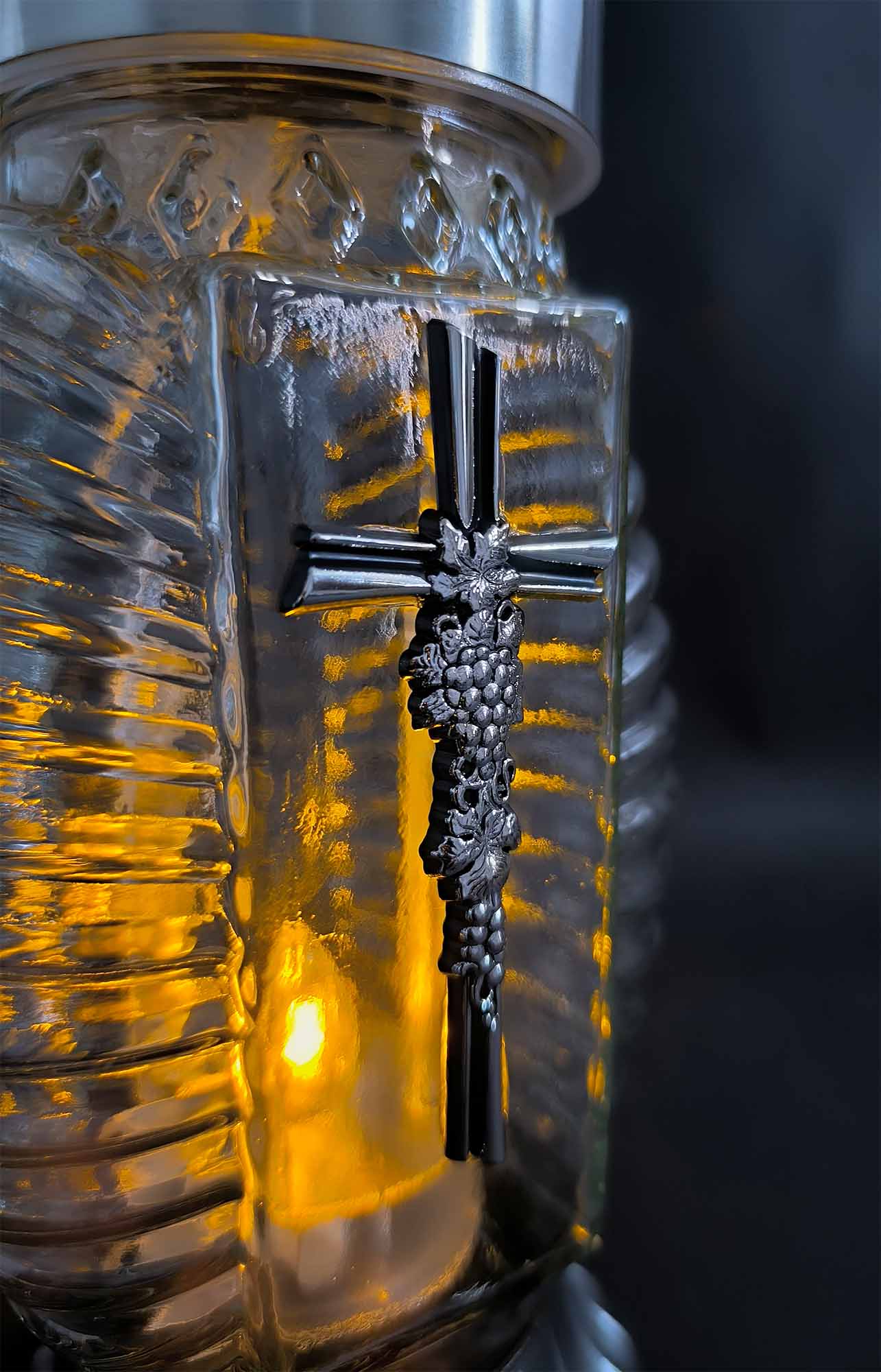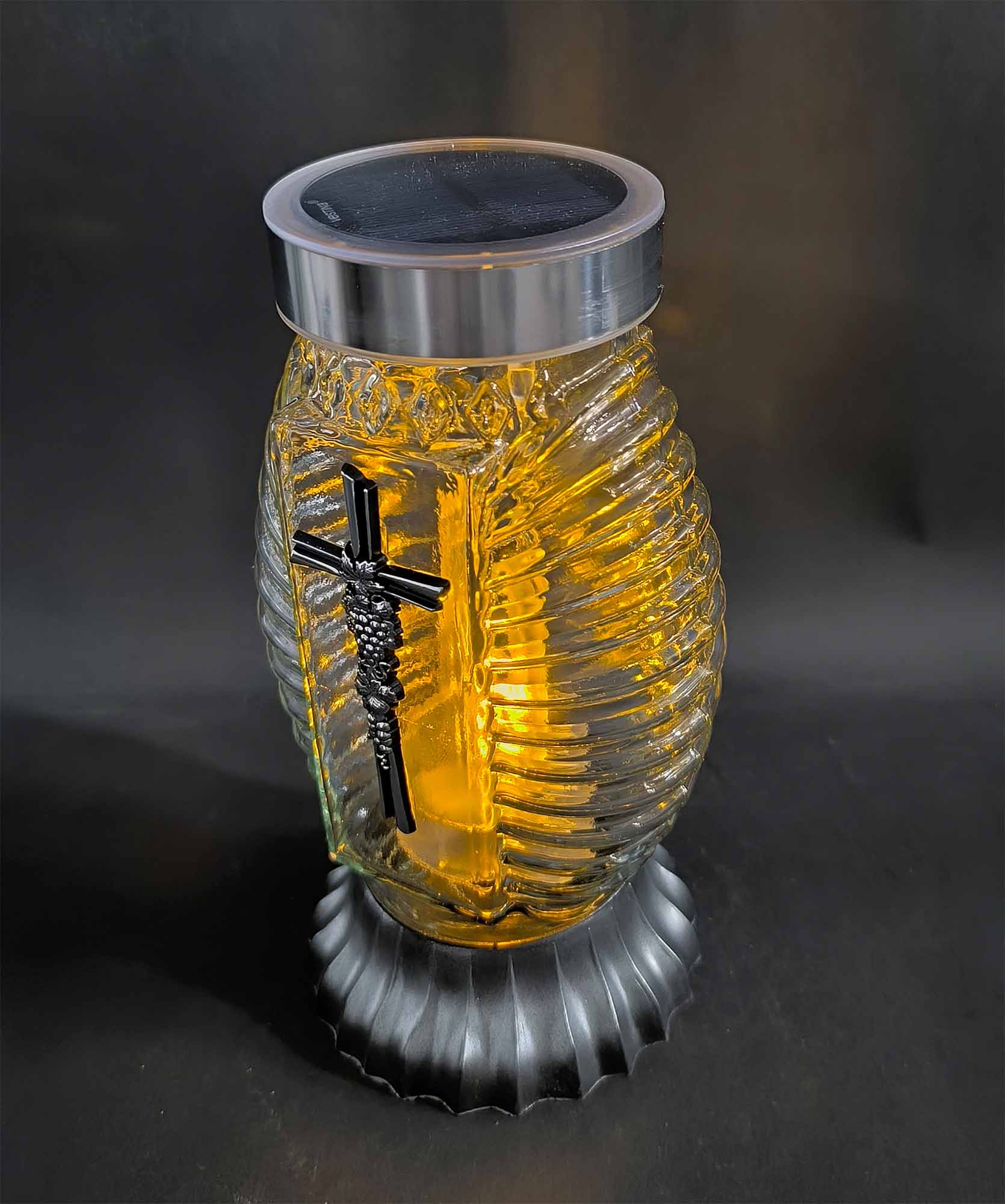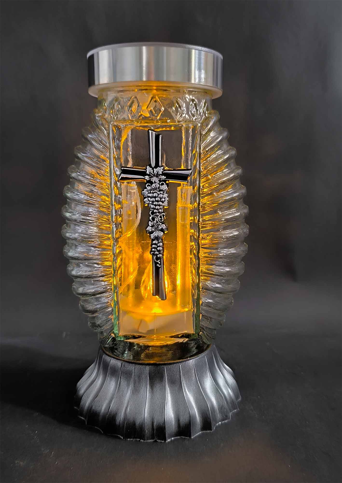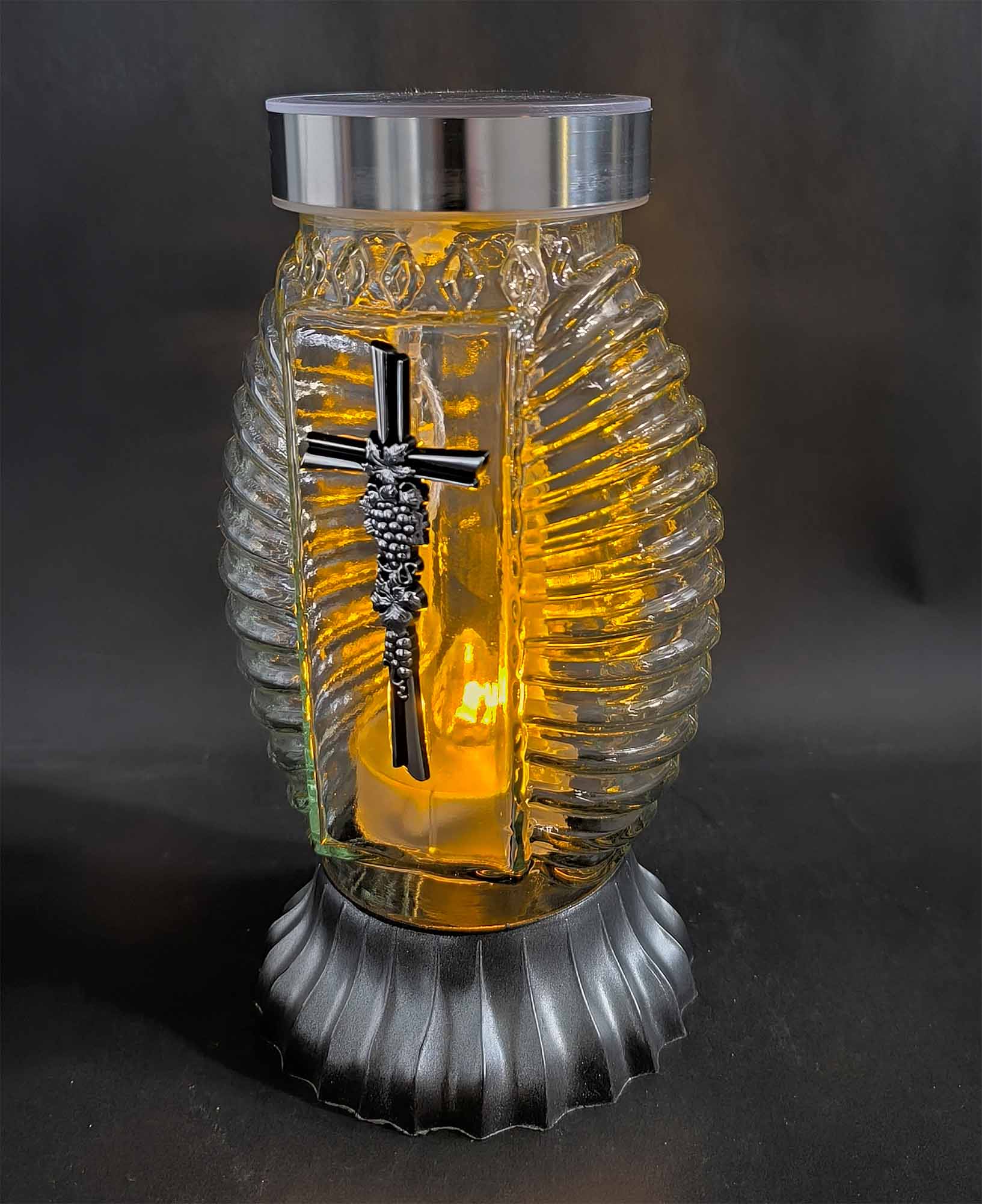 Znicz Solarny Fotowoltaiczny z Krzyżem – Szklany Lampion LED