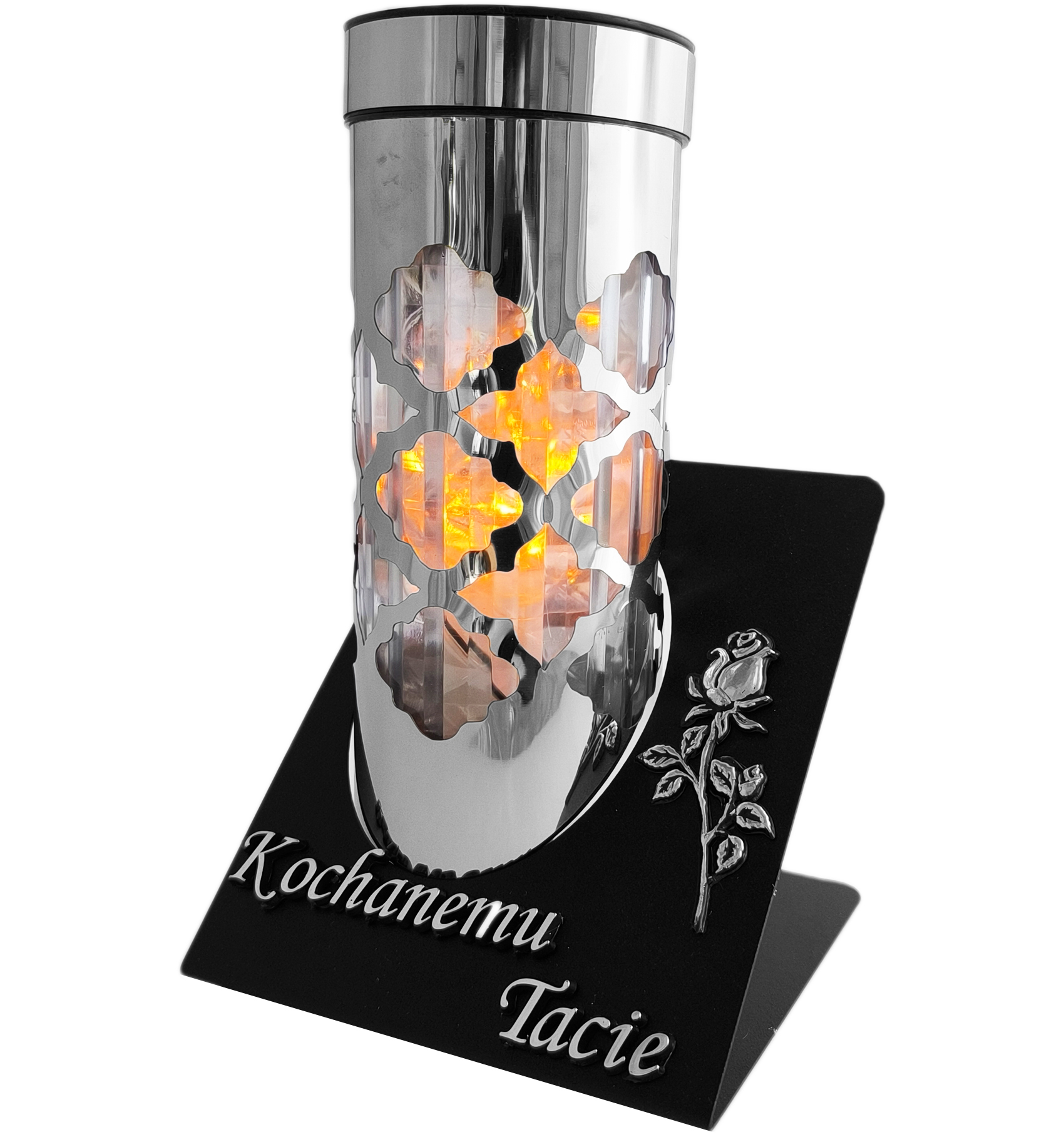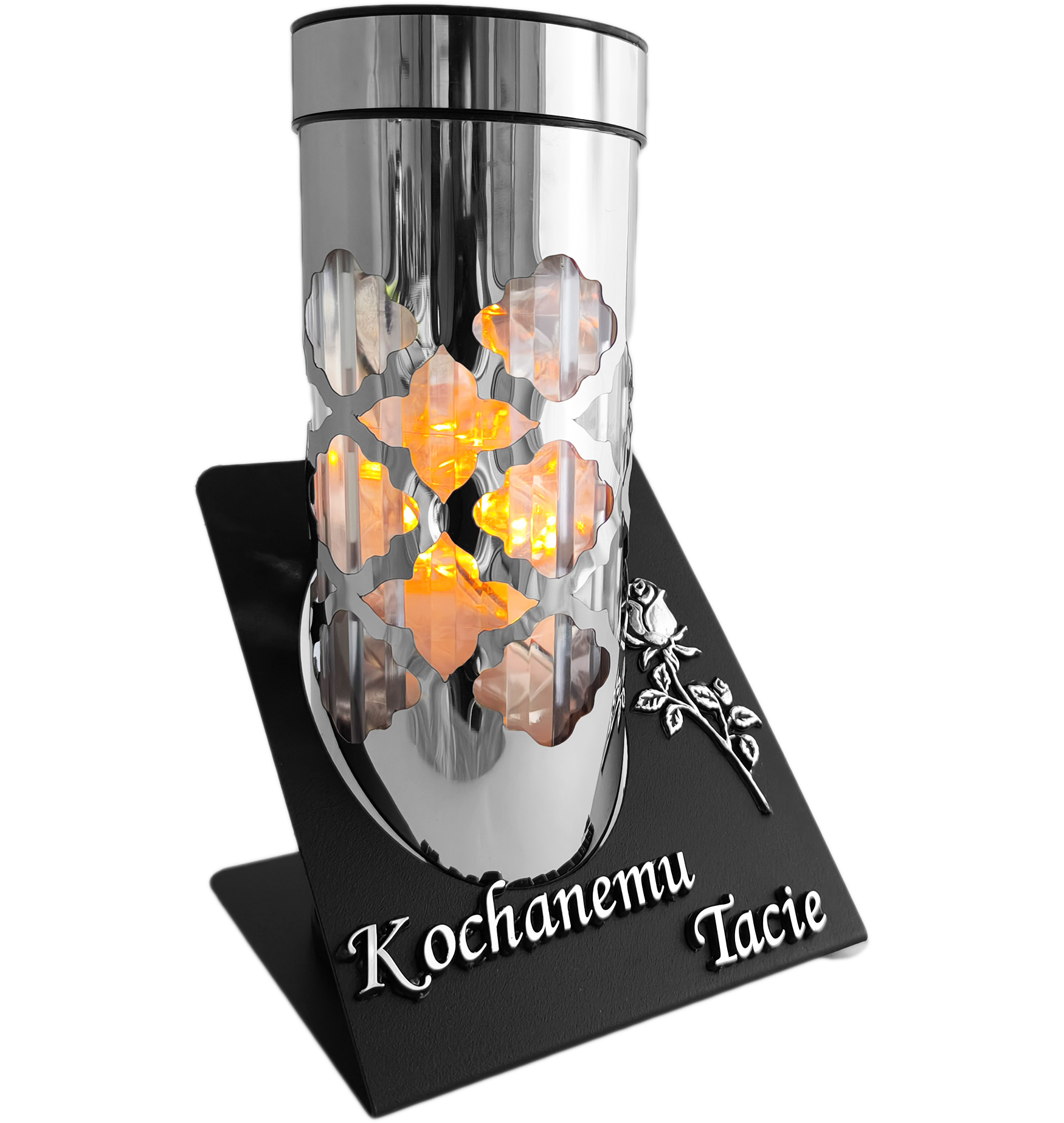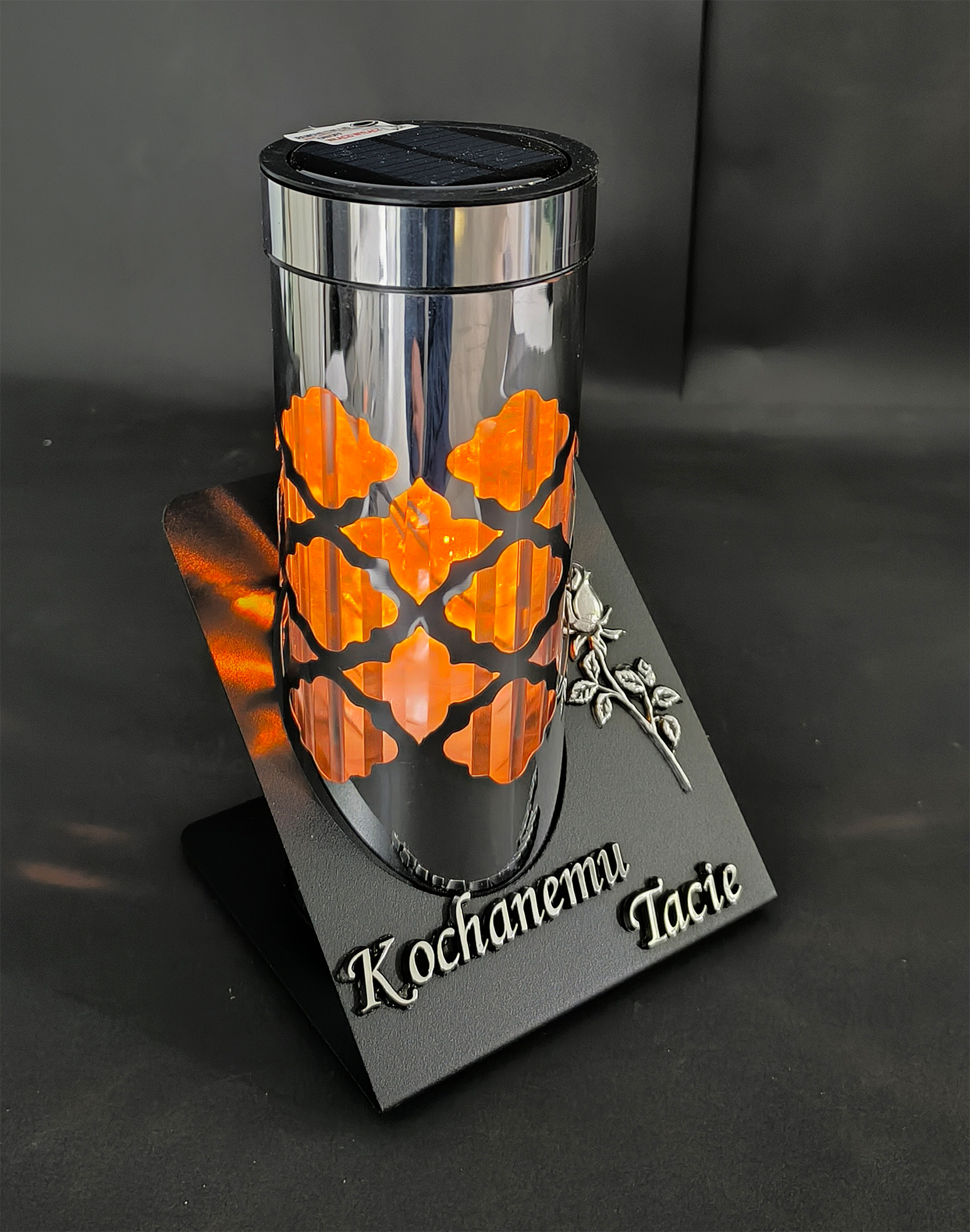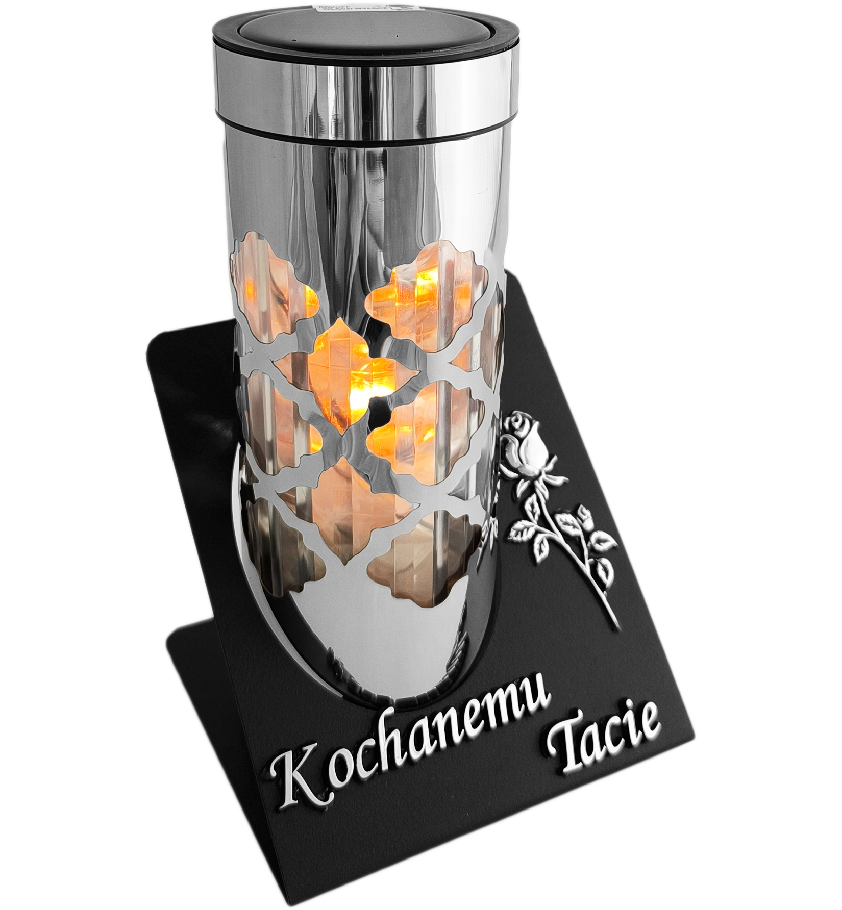 Nowoczesny znicz solarny ze stali z efektem płomienia z dedykacją dla Taty