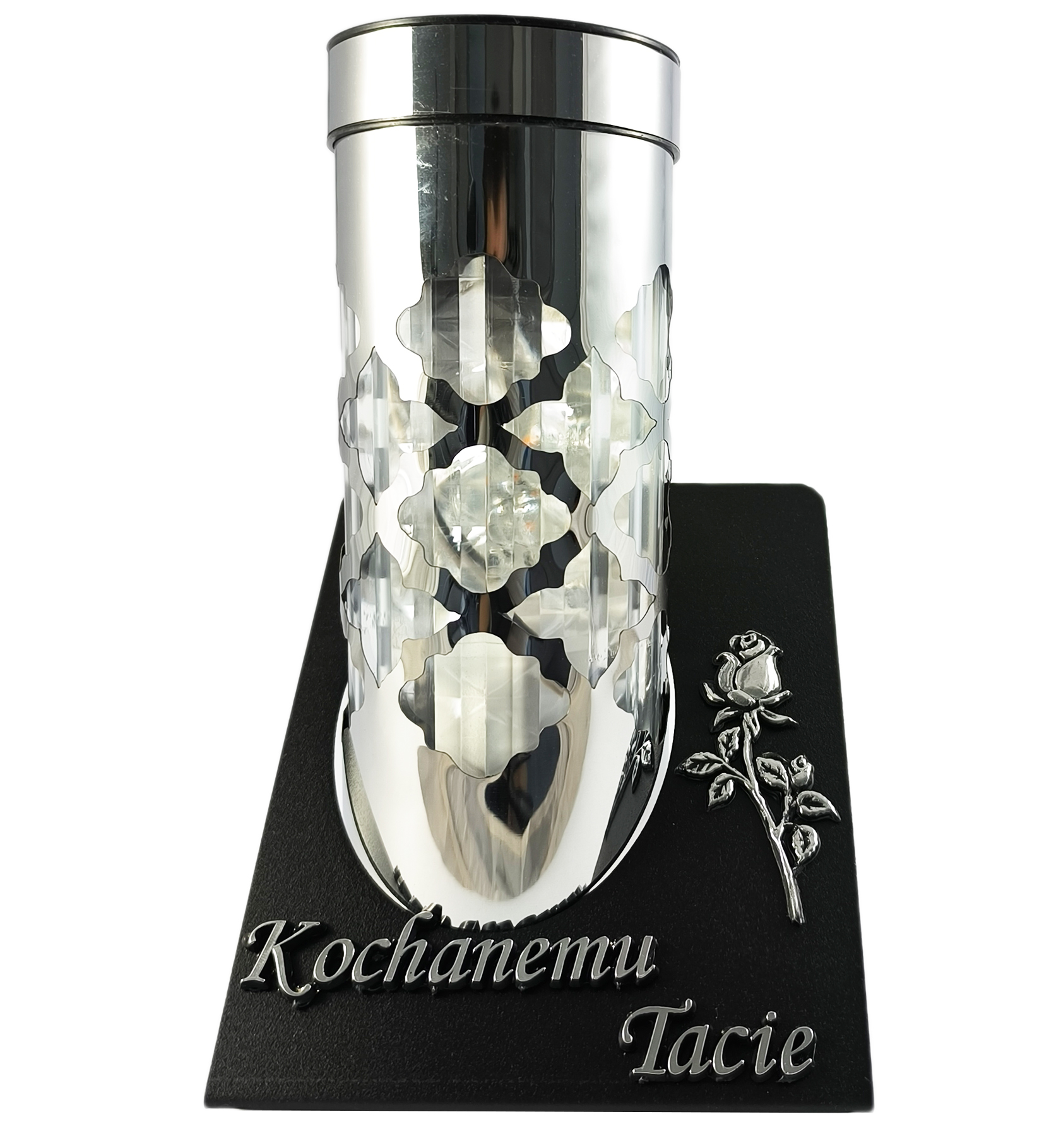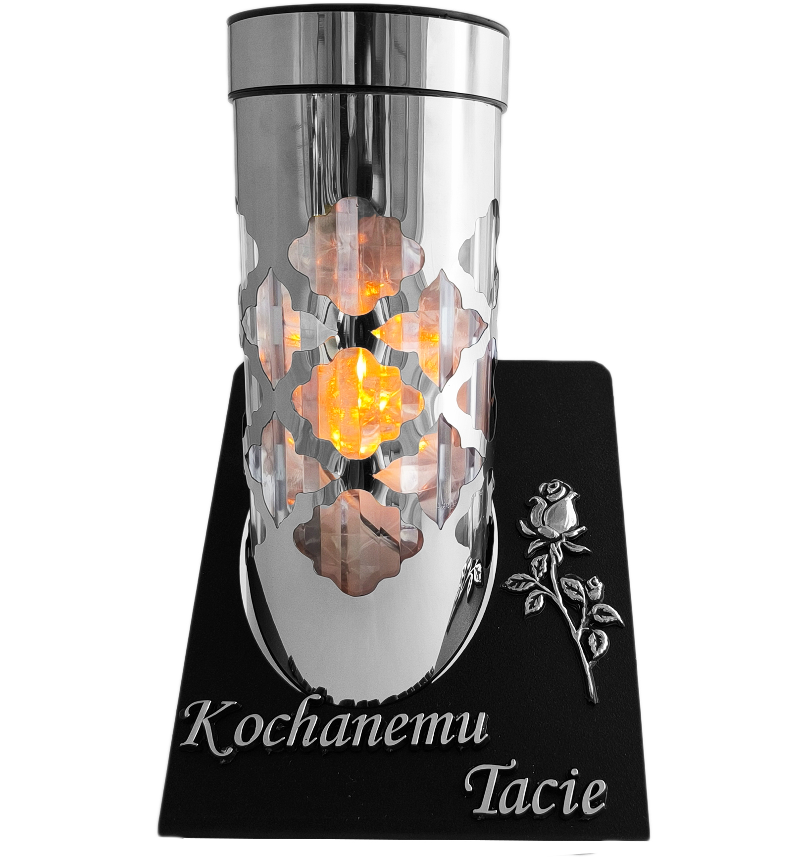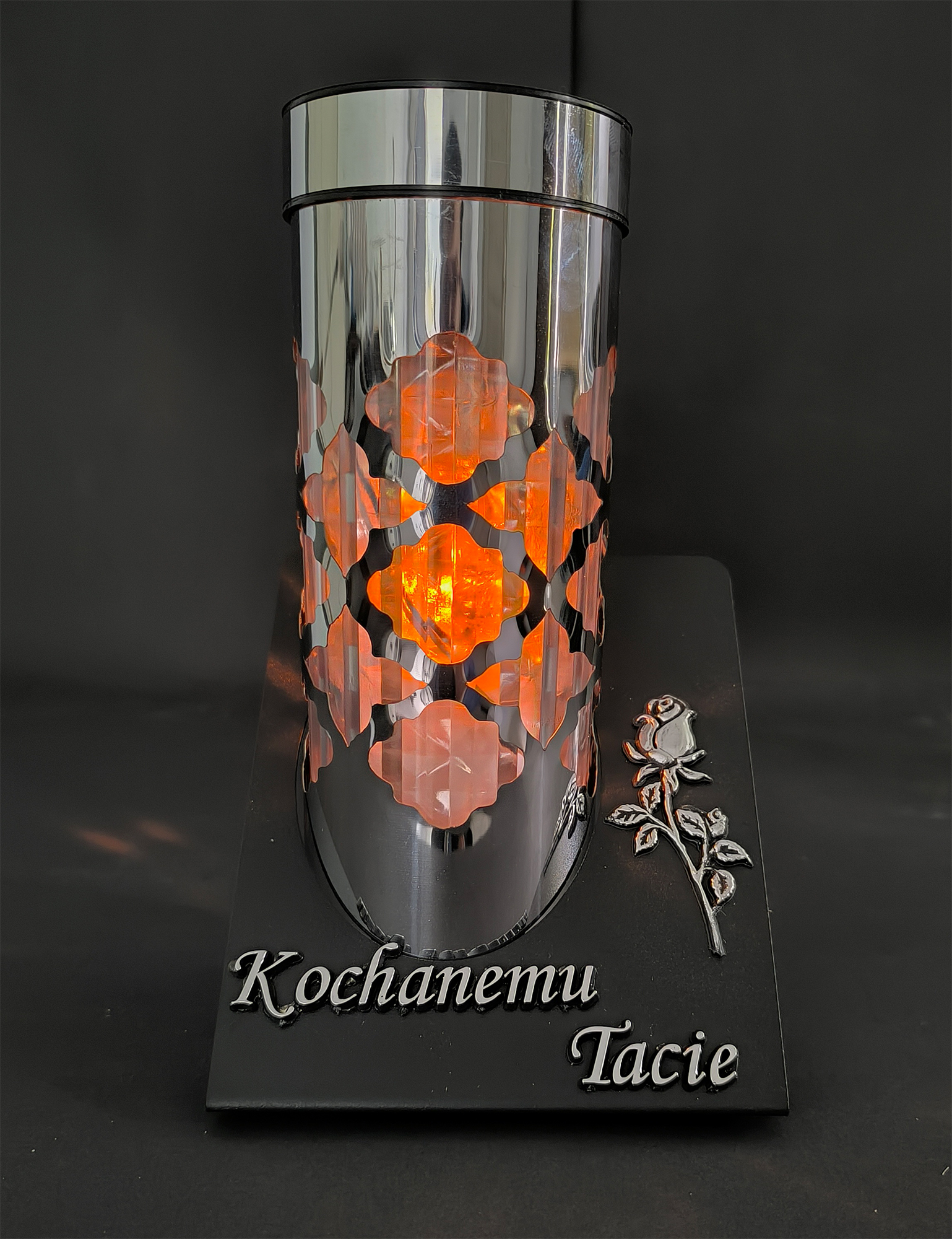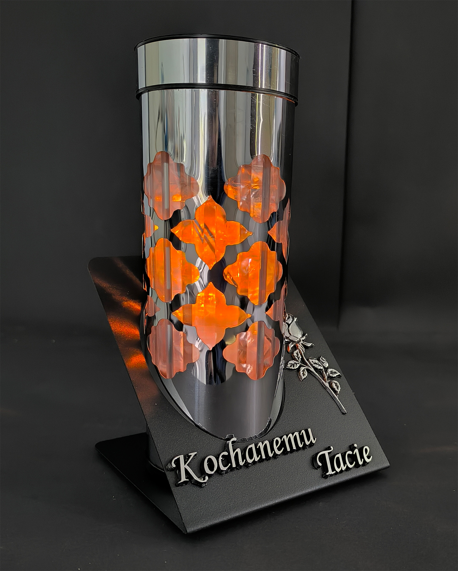 Nowoczesny znicz solarny ze stali z efektem płomienia z dedykacją dla Taty