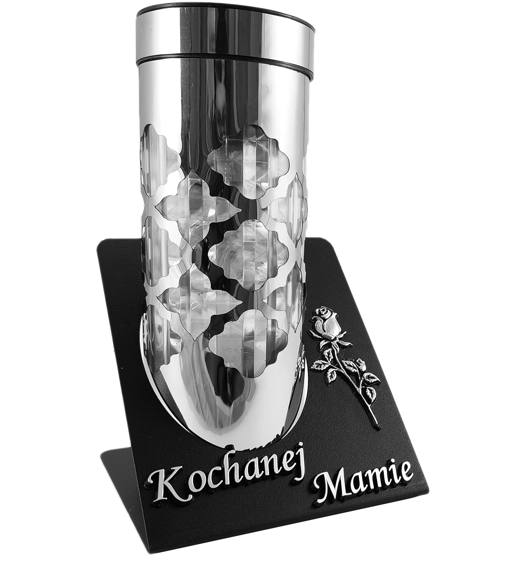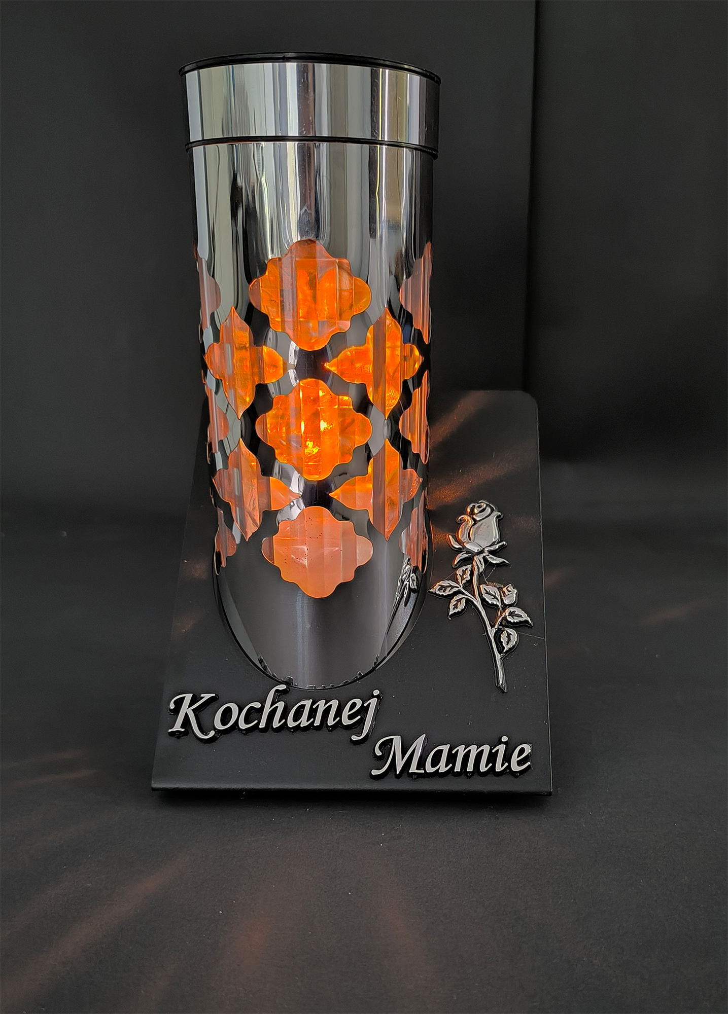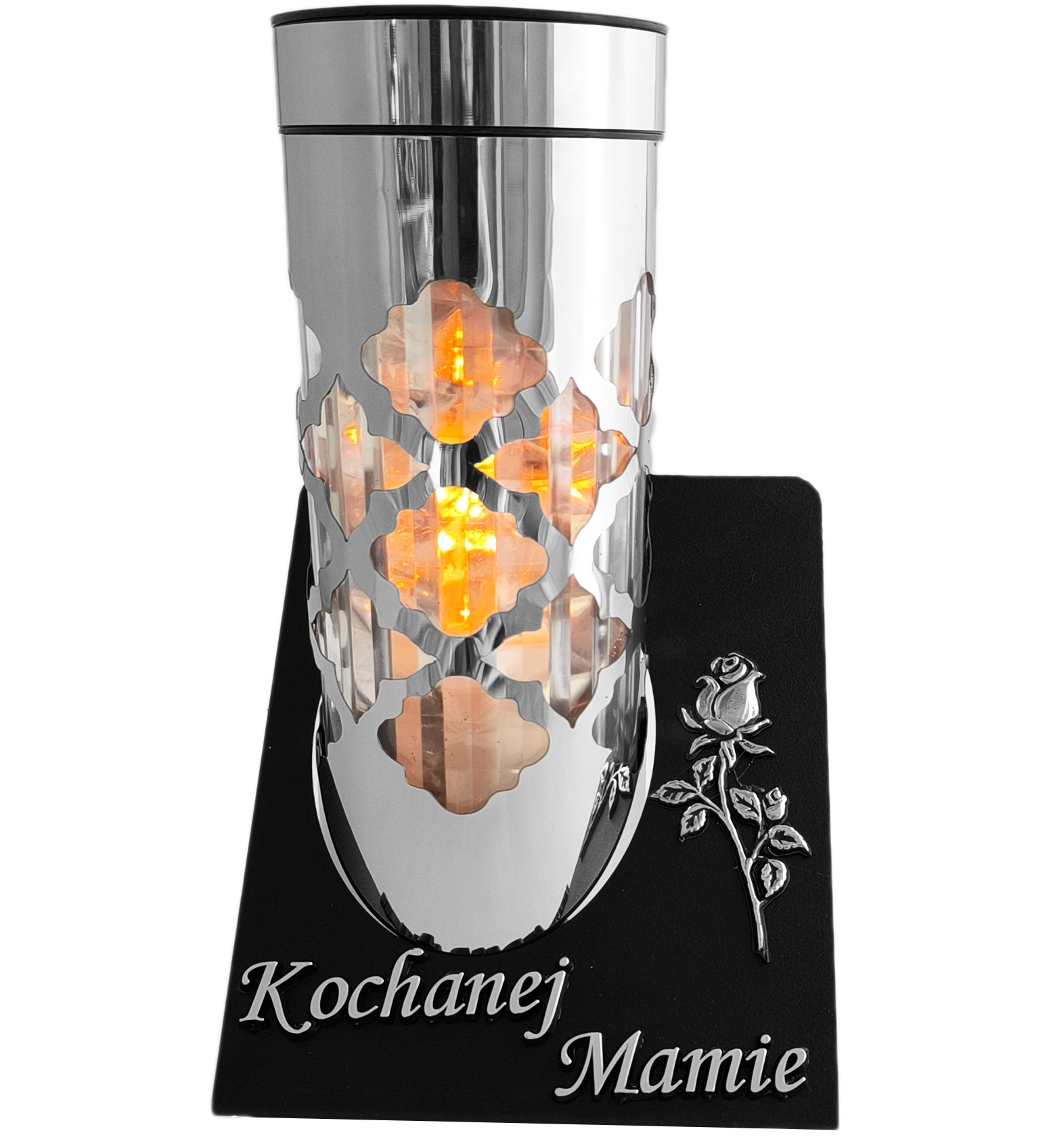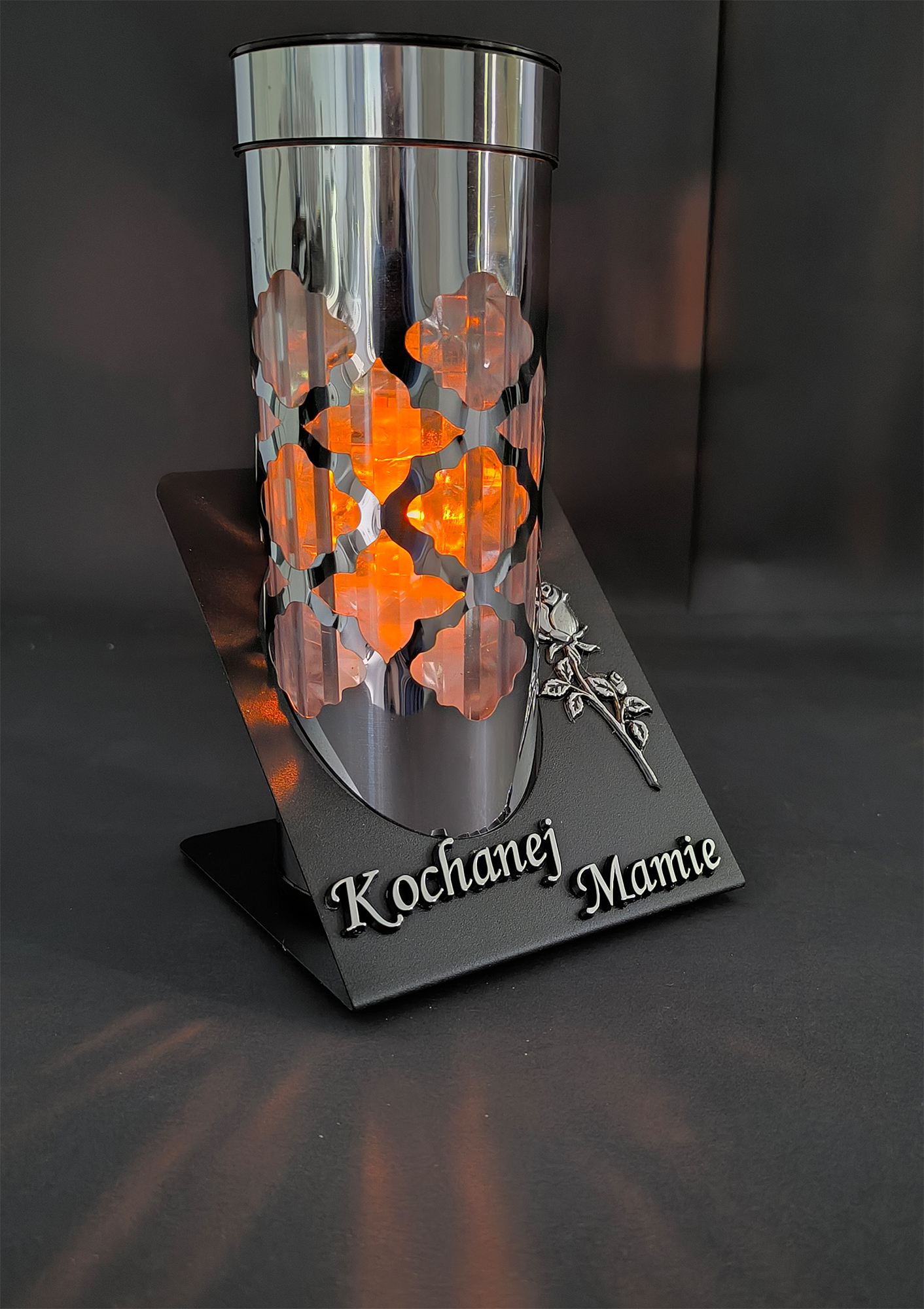 Nowoczesny znicz solarny ze stali z efektem płomienia z dedykacją dla Mamy