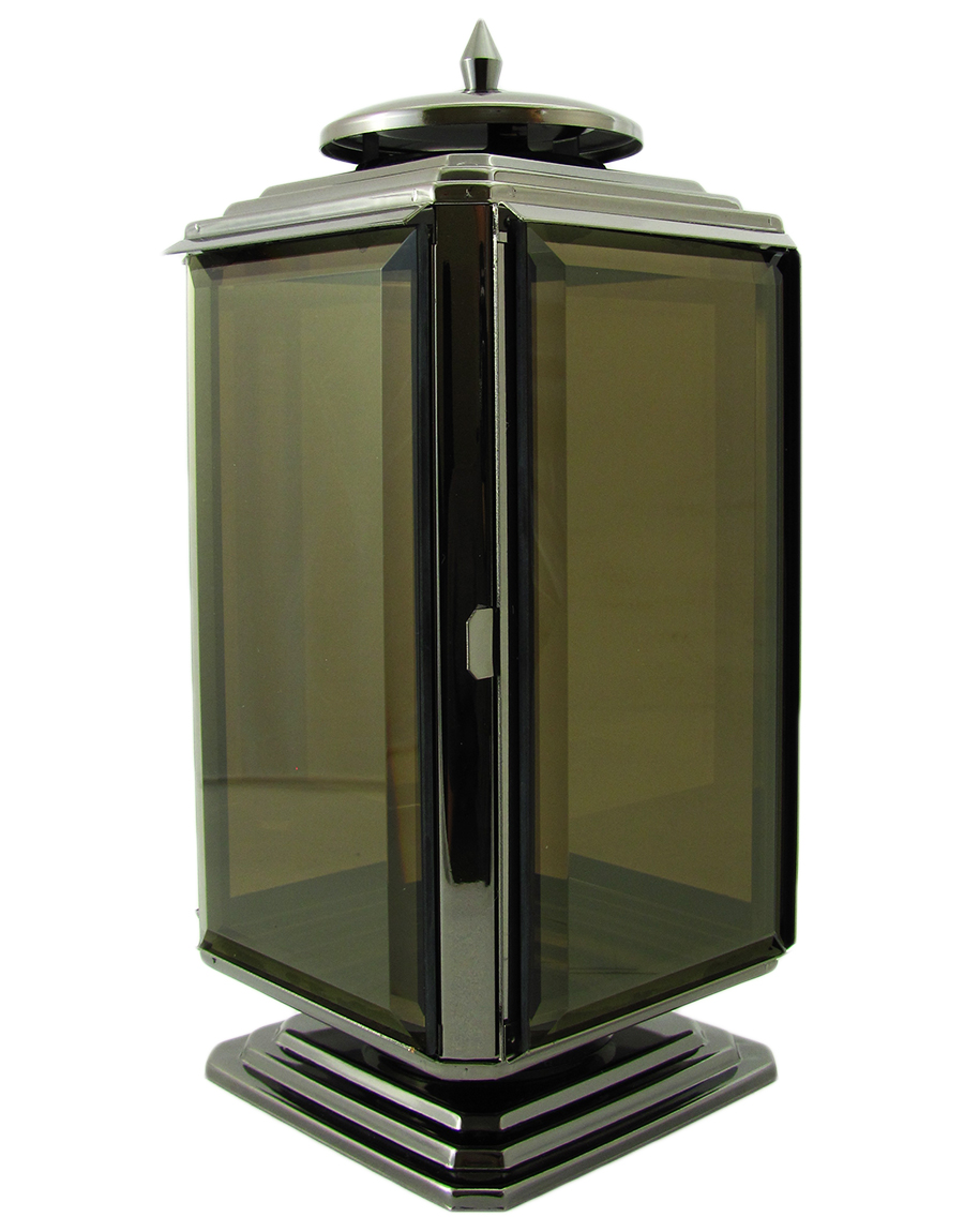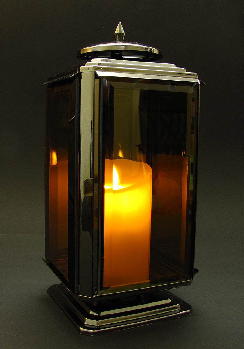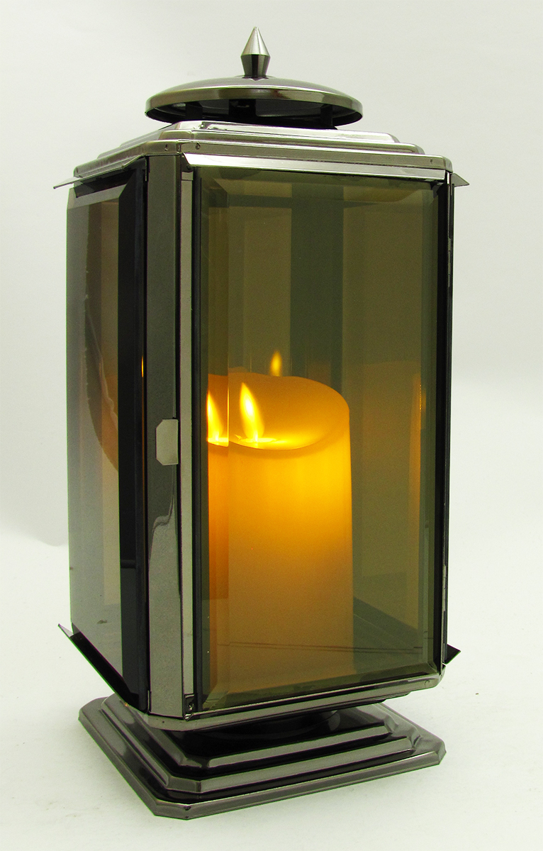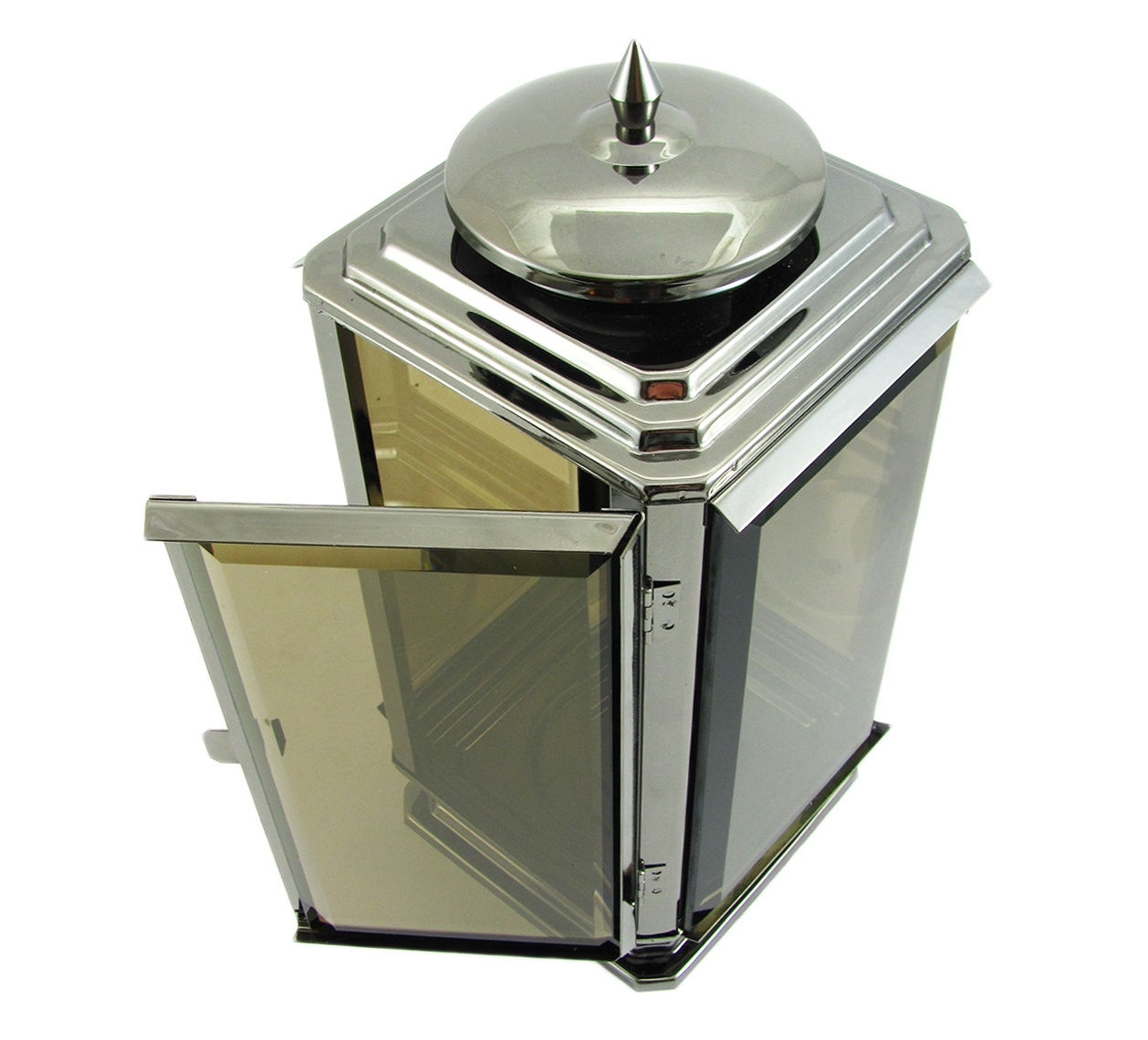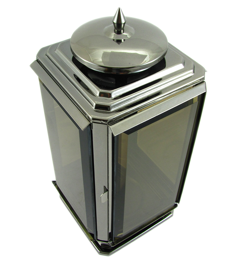 Ciężki solidny lampion na grób wykonany ze stali nierdzewnej oraz grubego szlifowanego szkła. Solidne wykonanie i zastosowane materiały zapewniają długą żywotność lampionu.